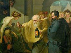 Painting: Diogenes searches for an honest man. Painting attributed to J.H.W Tischbein